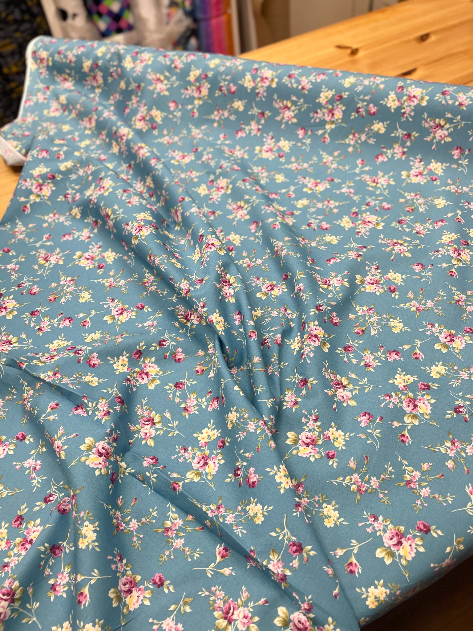 • Load image into Gallery viewer, Blue floral cotton poplin